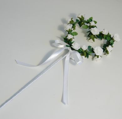 Jolie baguette légère, avec ses mini cœurs. Ruban satin et nœud assorti.