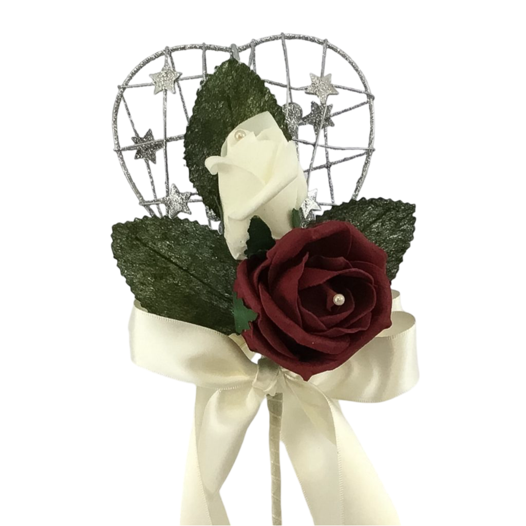 Composez la baguette pour les enfants avec une baguette en métal de la forme de votre choix, une rose ouverte et un bouton de rose disponible dans 35 coloris